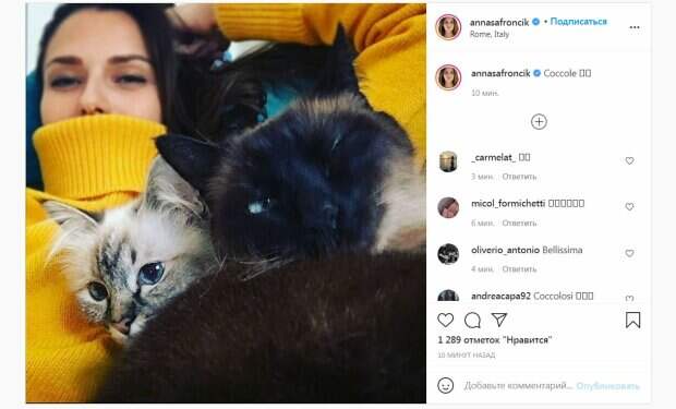 С возрастом там красотка стала моделью и актрисой. Анна активно ведет страничку в Инстаграм, где публикует разные фото. В этот раз артистка показала, как отдыхает вместе с маленькими членами семьи - с домашними животными. Актриса надела желтый свитер и прилегла на диван, а на нее легли кошка вместе с котенком. "Побаловать себя