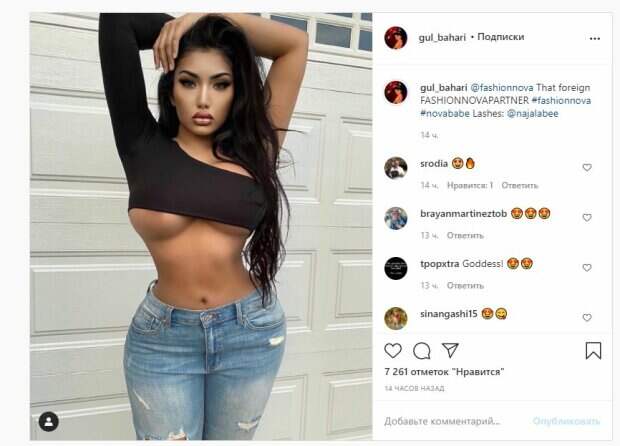 Известная модель Гюль Бахари, которую называют турецкой Кардашьян, показала себя в смелом образе На фото Гюль стояла в черном топе с одним рукавом и рваных джинсах. Красавица позировала на фоне гаражных ворот, а волосы решила оставить распущенными. Бахари надела настолько узкий топ, что грудь прямо выпирала из него и даже можно немного увидеть лишнее.