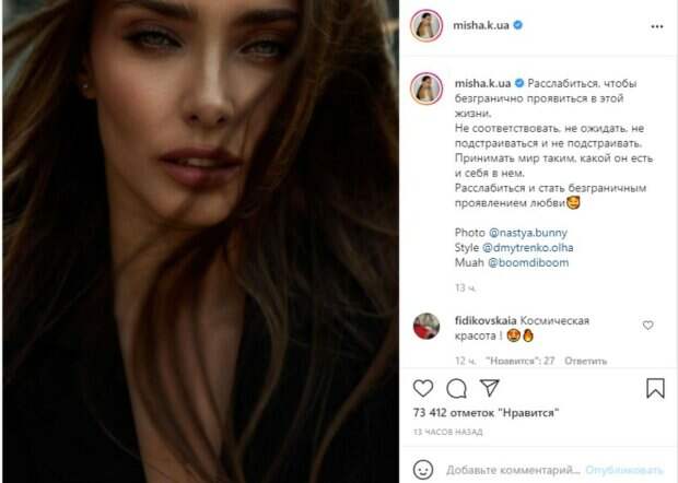 В этот раз под очередным постановочным кадром из фотосессии Ксения подняла тему чувств, направленных на стабильность в жизни. Как известно, артистка является любителем цитировать различные высказывания, направляющие на гармонию, за что ее саму не раз критиковали фанаты и советовали менее зацикливаться на проблемах. «Расслабиться, чтобы безгранично проявиться в этой жизни. Не соответствовать, не ожидать, не подстраиваться и не подстраивать. Принимать мир таким, какой он есть и себя в нем. Расслабиться и стать безграничным проявлением любви