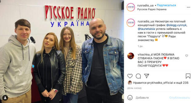 Как известно, Олег Винник всегда скрывал от общественности свою личную жизнь, однако в сети уже давно "гуляют" слухи о том, что у него роман с бек-вокалисткой. "Несмотря на плотный концертный график @olegg.vynnyk, @taunetaisia успела забежать к нам в гости с премьерой сольной песни "Подруга" Рады знакомству", - подписали фото. Олег Винник в программе "Ранок з Інтером" рассказал о том, что написал эту песню специально для бэк-вокалистки и рассказал почему это сделал. "У меня есть такое чувство, что это может произойти. Таюне мне не чужая: это человек, который со мной постоянно на сцене, мы тысячи концертов проехали, столько всего пережили вместе. Я знаю, что люди ее любят, они поют ее песни вместе с ней. Поэтому я буду делать все, чтобы у нее был свой репертуар, альбом, чтобы она могла зарабатывать на этом поприще себе на хлеб", - объяснил Олег Винник. Поклонники оставили несколько комментариев и поздравили Таюне с премьерой: "Моя любимая певица - Таюне, Я поздравляю вас с песней "Подруга". Ранее сообщалось, Олег Винник признался Дантесу, зачем чиновники обрывали ему телефон с 8 утра: "И попробуй не взять" Также, "Тайная жена" Олега Винника появилась в компании известных ведущих: "Успела забежать к нам. .." Politeka рассказывала, Олег Винник неожиданно обнародовал фото своей "тайной жены": "Столько всего пережили вместе"