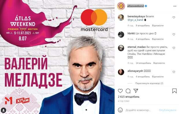 Российский певец грузинского происхождения Валерий после скандала с Ани Лорак вновь всколыхнул украинскую публику Оказалось, что певец посетит Киев для участия в Аtlas Weekend, сообщает Politeka.net со ссылкой на офциальную страницу фестиваля в Instagram. Реакция на приезд в Украину российского певца оказалась бурной.