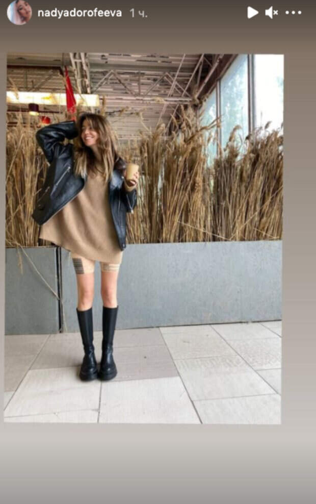 На этот раз артистка опубликовала несколько фото и видео на своей странице в Инстаграм. Она показала себя в большой бежевой футболке и в велосипедках такого же цвета. Свой образ певица дополнила кожаной курткой черного цвета. Также, до этого Надя Дорофеева дала "жару" в машине. На кадрах она отрывалась под новые песни, которые советует к прослушиванию. "Если уж мне зашла песня, то не отпускает долго", - описала своё состояние певица. Реакций и комментариев под публикациями нет, поскольку формат Сториз в Инстаграм этого не предусматривает. Ранее сообщалось, Дорофеева в коротком топике показала необычный способ развлечь себя: "Когда я одна в ванной..." Также, Дорофеева в крошечном костюме с вырезом на бедрах устроила "пожар" на сцене: "Образ пушечно крутой" Politeka рассказывала, Дорофеева в слишком короткой юбке заинтриговала украинцев, Монатик не смог удержаться: "Ребятки..."