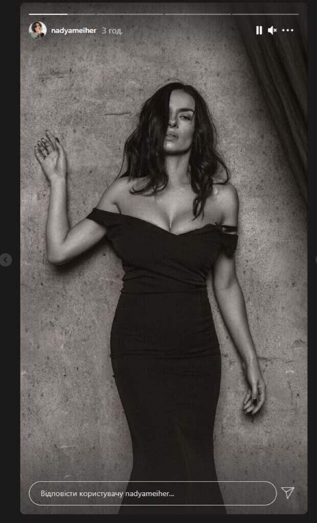 Не забывает девушка и об Инстаграм, где радует фанатов новым контентом. Надя в этот раз опубликовала сторис, на котором позировала в черном приталенном платье, спустив бретельки. Девушка настолько их опустила, что бюст оказался практически не прикрыт. Красотка стояла у стены, поражая чувственным взглядом. На втором фото Мейхер уже сидела в наряде с декольте за столом. Красотка отвела взгляд от объектива, позируя на черно-белом снимке. Фанаты не ставили лайки и не писали комментарии, ведь в сторис нет подобных функций. Сообщалось, что Надежда Мейхер показала свои занятия балетом и поговорила на философскую тему. Так, на фото в Instagram Надежда показала, как стоит на пуантах. Артистка облачена в облегающий черный купальник для занятий хореографией, который выгодно подчеркнул ее аппетитные формы. Напомним, 39-летняя экс-ВИА Гра Мейхер в легком платье забыла о своем возрасте А еще Politeka писала, что экс-ВИА Гра Надя Мейхер в воздушном платье с декольте показала соблазнительный образ Также Politeka сообщала, что экс-ВИА Гра Мейхер показала идеальные формы в полупрозрачном наряде