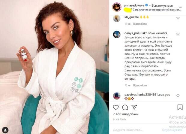 Уточним, что на опубликованной фотографии Седокова позирует в одном халате, демонстрируя идеальное лицо и безупречный загар. «Обожаю», «о, мне дерматолог каждый месяц делает такое», «бомбезный вид», «Мне кажется, лучше всего спорт, питание и холодный душ, а ещё отсутствие алкоголя а рационе. Это больше всего влияет на наш внешний вид», «как всегда прекрасно выглядите, Анна!», «безупречный вид», - пишут ее поклонники. Как мы писали до этого, певица Анна Седокова показала себя и рассказала о мнениях На кадре Седокова позирует в смелом платье. Красотка сидит на стуле и показывает себя. После этого наряд меняется на платье с открытыми плечами и без белья. Потом появляется топ и короткие шорты. После этого звезда показала еще несколько образов. Анна каждый лук сопровождала комментарием критики. Напомним, что Седокова опозорилась вместе с любовником прямо на съемках А еще Politeka писала, что Седокова сверкнула похудевшей фигурой после диеты Также Politeka сообщала, что Седокову лишили возможности увидеть собственную дочь, причина поражает