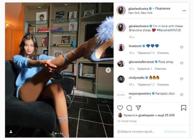 Известная модель Жизель Оливейра, звезда Victoria's Secret показала свою любовь На фото красотка позировала в кофточке, на которой расстегнула пуговицы, и коротеньких шортиках. Звезда задрала ножку, хвастаясь босоножками, которые ей очень понравились. На первом снимке Жизель задрала ножку, показывая не только обувь, но и светя ягодицами.