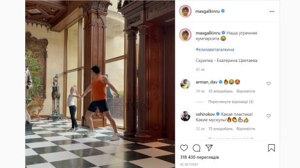 Российский юморист и шоумен Максим Галкин показал роскошный утренний танец, который исполнил со своей дочерью Лизой Максим Галкин показал своим фанатам, как должно начинаться счастливое утро. По этому поводу знаменитый российский артист, постарался выложиться на все 100 ради танцевального шедевра. Соответствующим видео он поделился в Инстаграм, пишет Politeka.