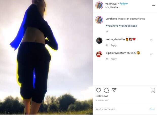 Она станцевала для поклонников в коротком обтягивающем топе, открывшем живот, и спортивных штанах. Красотка выставила кадр так, чтобы на заднем плане было солнце, поэтому большую часть времени виден только ее силуэт. Певица показала несколько движений бедрами и другими выдающимися частями тела, а напоследок подошла к камере и продолжила танцевать, раздвинув ноги. "Утренняя размиНочка", - подписала ролик Татьяна Воржева. Певица любит бывать на природе и нередко хвастается снимками из зеленых мест. Так на одном из недавних фото она разлеглась на траве понежится в лучах солнца, надев блестящий изумрудний топик без бретелек, который подчеркнул ее изящную фигуру. Татьяна слегка наклонила голову, продемонстрировав во всей красе длинную шею и аккуратный профиль, как у Анджелины Джоли. Напомним, украинская Джоли пикантно оголилась на камеру и перепела Билли Айлиш: "Чуть не расплакалась". Как сообщала Politeka, Энистон раскрыла правду о браке с Брэдом Питтом, у Джоли не было шансов: «Мы занимались…» Также Politeka писала, что сестры и братья Джоли, Лопес, Бузовой, Элджея и других звезд показали себя во всей красе: топ семейных фото.