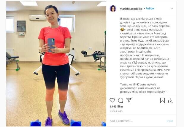 Украинская телеведущая Маричка Падалко начала активно заниматься спортом после болезни Как сообщает Politeka.net, недавно звезда канала "1+1" переболела китайским вирусом, а теперь пытается восстановить былую форму. На своей странице в соцсети "Инстаграм" она выложила новое фото из тренажерного зала.