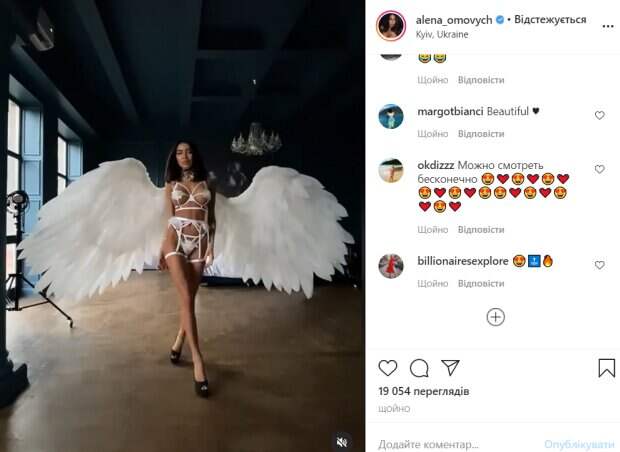 Известная модель Алена Омович, которую называют украинской Кардашьян, показала себя во всей красе Как передает Politeka.net, у себя в Инстаграм девушка опубликовала видео, которое свело с ума ее поклонников. Красотка примеряла огромные ангельские крылья. Она полностью разделась, а интимные места прикрыла минималистичным кружевным бельем.