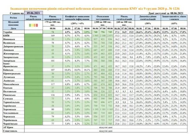 В Украине обновили зоны карантина Как передает Politeka.net, об этом свидетельствуют обновленные данные Минздрава. Теперь все регионы страны отнесены к зеленой зоне. В зеленой зоне карантина действуют самые слабые карантинные ограничения, а именно: обязательное ношение масок в общественных зданиях; разрешены массовые мероприятия с участием более 50 человек; кинотеатры и учреждения культуры могут работать с заполненностью не более 50% мест в каждом отдельном кинозале или зале, перевозки пассажиров разрешены только в количестве сидячих мест в транспорте; работа кафе, баров, ресторанов после 22 и до 7 часов.
