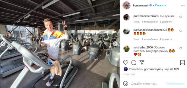 «Физкульт-привет, друзья! С соблюдением карантинных ограничений, после январского локдауна уже можно ходить в спортклубы. Сейчас людей пускают мало, в клубах свободно. Меня часто спрашивали, хожу ли я «на спорт», - начал свой пост Комаров. По его словам, летом он любит устраивать пробежку в лесу. Регулярно заниматься спортом у телеведущего не получается из-за плотного графика съемок. Он отметил, что профессионально занимался бодибилдингом с 15 до 17 лет. Сейчас же занимается исключительно для здоровья. «После школы я очень быстро и настолько сильно увлекся фотографией и журналистикой, что со спортом пришлось попрощаться (хотя тренер уговаривал идти по этой линии). Но поддерживать себя в форме я стараюсь. Люблю и сам процесс, и ощущение крепатуры. Только в свои 37 лет удивляюсь, как в 15-16 лет брал штангу 50 килограммов на жим лежа просто для разминки, относясь к такому весу скептическии и с легкой насмешкой», - пошутил Комаров. В комментариях мужчину поддержали приятными комплиментами и лайками. Пост оценила даже певица Надежда Дорофеева. «Физкульт привет!!! Самый классный журналист, ведущий», «В Вас столько позитива!! Вы солнечный человек!», «Дмитрий! Успехов вам и здоровья! », «Дима, ты всегда в форме! Все-таки ты мечтаешь об Эвересте», - пишут люди. Напомним, что Комаров из "Мир наизнанку" поделился своим счастьем, ведущего не узнать: "Как я и просил...". Как сообщала Politeka, жена Комарова из "Мир наизнанку" в костюме показала фигуру в полный рост: "Красивее, чем ангелы Victoria's Secret". Также Politeka писала, что жена Комарова из "Мира наизнанку" показала мастерство переодевания: "Сегодня снимаю...".