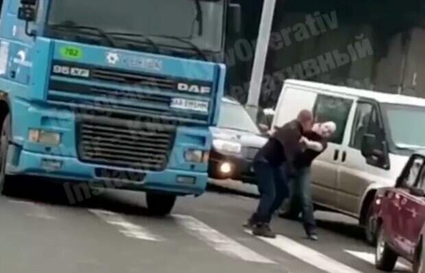 "Куда же без файта на дороге? Обеденная драка на Оболони - водитель фуры VS водитель Газели. Делаем ставки", - говорится в сообщении. Пока мужчины дрались, к ним подошел дедушка и попытался их разнять и, наверное, объяснить, что не стоит устраивать бои на дороге. Чем закончилась ссора с задействованием кулаков - неизвестно. Ранее сообщалось, что в Киеве пьяный мужчина сул за руль, чтобы забрать свою жену из больницы, а по итогу и сам был госпитализирован. Так, на улице Лобановского 140, случилась авария. Водитель автомобиля Smart въехал в припаркованную машину "Новой почты" Citroen. Женщина-пассажир машины Smart рассказала, что она была в больнице и попросила своего мужа забрать ее. По ее словам, она не знала, что муж в это время плотно выпивал. Водитель "Новой Почты" сказал, что его оппонент "надул" в драгер аж 2 промилле. Напомним, три машины столкнулись на киевской трассе, топливо вылилось на дорогу. Как сообщала Politeka, очевидцы трагического ДТП рассказали о том, что происходило на остановке в Киеве. Также сообщалось, что трагическое ДТП произошло на трассе, среди жертв ребенок.
