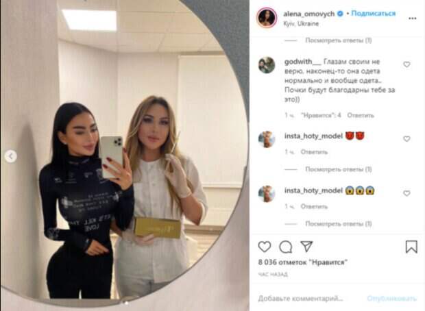 Впрочем, Алена не скрывает того факта, что увеличила бюст, ягодицы, сменила форму носа и скул, а также сделала интимный пирсинг и периодически проводит время у косметолога для того, чтобы увеличить губы. На видео заметно, что Алена собой довольна, поэтому большинство магазинов одежды сотрудничают с девушкой: Омович не боится камер и легко будоражит преображениями в любых нарядах. Короткое бежевое платье, под который модель не стала надевать лифчик, выглядело более чем привлекательно. Также Алена недавно рассказала, как делала процедуру увлажнения кожи. Сухой воздух в доме и ветреный на улице, авитаминоз организма и недостаток солнечных дней приводят к усыханию кожи, поэтому она решила сделать биоревиталиацию. Пользователи сети отреагировали довольно неоднозначно: «Нам не нужно мазать или увлажнять,мы и так красивые европейцы; Какая же ты красивая