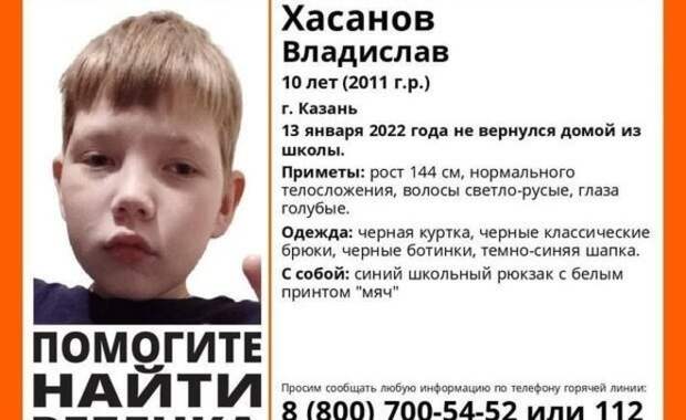Поиски 10-летнего Владислава Хасанова продолжаются, сообщили в мэрии Казани. По данным пресс-службы, информация о том, что ребенок был найден, «от источников была передана некорректно». Мальчика обнаружили по камерам, на место выехали, однако он еще не доставлен домой. — Приносим извинения за неточность и введение в заблуждение.