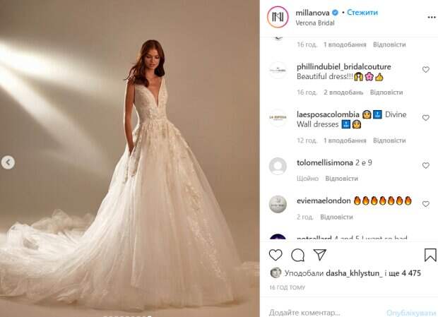 Стоит отметить, что выглядела Хлистун превосходно. На одном из снимков она также примеряла фату. «Будьте готовы ко взрыву красоты. Выберите свое любимое платье», - подписали пост авторы аккаунта. В комментариях стали расхваливать Дарью, а также свадебные наряды. «Красивая», «Идеальная принцесса», «Вау. Эти платья наводят на мысль о замужестве, хотя жениха я еще не нашла», «Нееет! Не могу выбрать фаворита, это невозможно!», «Потрясающие платья», «Красивое платье!», - пишут пользователи сети. Ранее мы писали, что Дарья Хлистун похвасталась стройной фигурой. Красотка позировала в блестящем топе, который больше напоминал лифчик, и короткой юбке. Позы модели выглядели впечатляюще. Широко известной в Украине Дашу сделал роман с Михайлюком, хотя на данный момент девушка очень известна и востребована в модельном мире. Ее карьера стартовала в 2016 году, но она уже успела принять участие в показах Dolce & Gabbana, Marc Jacobs и Chanel. Напомним, что Дарья Хлистун в прозрачном платье очаровала глубоким декольте: малышка на миллион. Как сообщала Politeka, Дарья Хлистун потрясла видом в черном белье: "Держит в напряжении". Также Politeka писала, что Дарья Хлистун показала раздетого красавца в своей спальне: "Да, мы уже. ..".