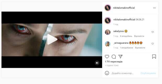 "04.06.21", - такую подпись добавил Ломакин, скорее всего, это дата выхода клипа. Как видно, Никита на видео похож на зомби, он пускает себе кровь, а потом его показывают лежащим в луже крови лицом к земли. Его волосы тоже касаются крови. Красавчик не смотрит в объектив, он печально смотрит на кровь с приоткрытым ртом. Никита Ломакин готовит выход нового перформанса. Поклонники тут же принялись комментировать урывки клипа, засыпая парня комплиментами и восторженными словами. "Слишком шикарно", "Это прям как трейлер к фильму - бомба