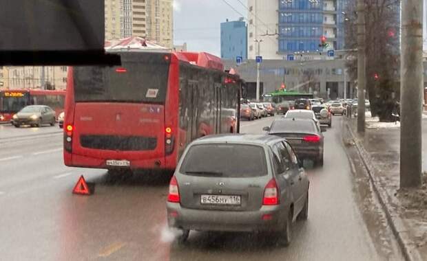 У здания Министерства транспорта и дорожного хозяйства Татарстана столкнулись «Газель» и городской автобус. На месте образовалась пробка. Затор начинается практически сразу после Компрессорного по Сибирскому тракту и переходит в улицу Николая Ершова. Фото: realnoevremya.ru Ранее синоптики предупредили татарстанцев о метели с ухудшением видимости и снежной каше на дорогах.