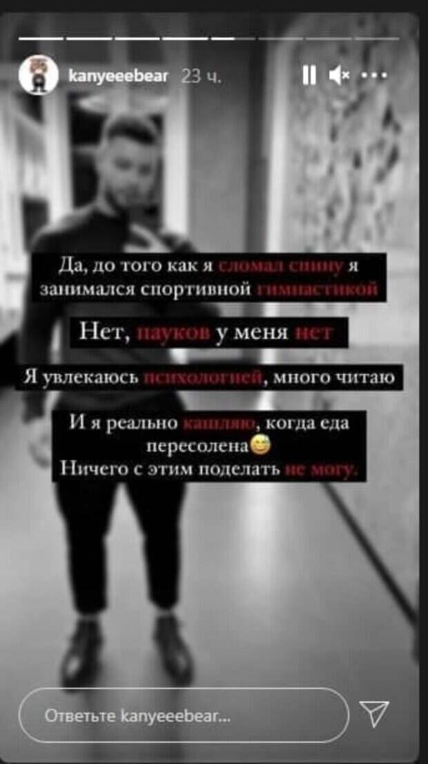 "Холостяк" решил одним махом ответить на несколько самых каверзных вопросов в своих "сториз" в Инстаграм, передает Politeka.net. В частности, мужчина рассказал об уникальной особенности своего организма - странной реакции на слишком соленую пищу. - "Да, до того, как я сломал спину, я занимался спортивной гимнастикой" - "Нет, пауков у меня нет" - "Я увлекаюсь психологией, много читаю" - "И я реально кашляю, когда еда пересолена. Ничего с этим поделать не могу" Ранее Заливако признавался, что серьезная травма спины, о которой его спросили выше, случилась, когда ему было 12 лет, и стала переломным моментом в его жизи. По словам Михаила, внезапная беда заставила его задуматься и пересмотреть свой жизненный путь. "У меня в детстве был перелом спины... Ну, как в детстве, мне было 12 лет и, скажем так, очень много было переосмыслений... В общем, он был переломным", - делился "Холостяк". Это не единственное потрясение, случившееся в жизни парня. В раннем детстве у него было серьезное заболевание, от которого умирают. "У меня с кровью была проблема... Меня лечили постоянно. Геморрагический васкулит – аутоиммунное заболевание. Разрывался сосуд, и кровь выходила под кожу. Переживали, что это может быть на суставах и внутренних органах", - рассказывал Михаил. Он добавил, что заболевание со временем просто перестало у него проявляться, но, по факту, его так и не вылечили. Напомним, что отвергнутая "Холостяком" Заливако участница-красотка поведала, что на самом деле произошло: "Я открыла свое сердце и...". Как сообщала Politeka, "Холостяка" Заливако сравнили с Максом Михайлюком после курьезного момента в эфире: "Миша нервно курит..." Также Politeka писала, что "Холостяк" Заливако взбесил украинок неожиданным поступком: «Как он унизил девушек, позор»