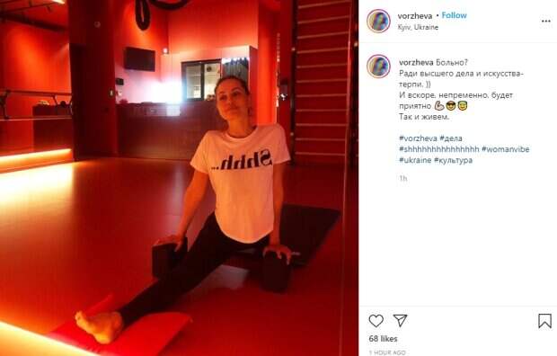 На снимке Татьяна Воржева позирует в весьма неудобной позе - в продольном шпагате. Одна нога девушки лежит на подушке, другая - скрылась на коврике за спиной, при этом певица опирается руками на два бруска. На лице украинской Джоли застыла мука, кажется, что она изо всех сил старается сдержать болезненную гримасу. На ней надета белая футболка и черные леггинсы, можно заметить, что звезда занимается без обуви. Стоит отметить, что комната похожа на зал для балета или гимнастики. Из-за тусклого красного освещения в помещении царит гнетущая атмосфера. "Больно? Ради высшего дела и искусства- терпи. )) И вскоре, непременно, будет приятно 💪🏻😎😇 Так и живем", - поделилась Татьяна Воржева. Ранее исполнительница порадовала фанатов красивым фото из ботанического сада. Татьяна Воржева устроила забег среди деревьев, а затем начала тренировать растяжку прямо на лавочке. Напомним, что украинская Джоли задрала платье до неприличия и застыла в пикантной позе: «Красотища!». Как сообщала Politeka, украинская Джоли раздвинула ноги и показала горячие движения на природе: видео завораживает. Также Politeka писала, что украинская Джоли в блестящем топе без белья выставила напоказ идеальное тело: "Это лето, мальчик".