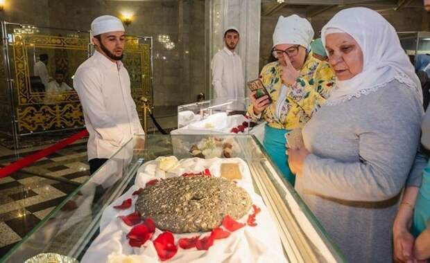— По приблизительным подсчетам Болгарского музея-заповедника, экспонаты за 2 дня смогли посмотреть около 30 тысяч человек. Но интерес мусульман к уникальным предметам не спадал, и организаторы приняли решение выставить их в самом центре Казани — в мечети «Кул Шариф», — рассказали в ДУМ. Фото: пресс-служба ДУМ РТ Напомним, на экспозиции представлены меч пророка и чаша для масла, кувшины сподвижника Биляла, жены пророка и дочери Фатимы, а также ее ручная мельница. Посмотреть можно будет на походную фляжку и кольчугу Халида бин аль-Валида, а также кинжал Абу Бакра. Экспозиция будет представлена в холле мечети «Кул Шариф» 22 и 23 мая с 10:00 до 19:00. Подписывайтесь на telegram-канал и группу «ВКонтакте» «Реального времени».