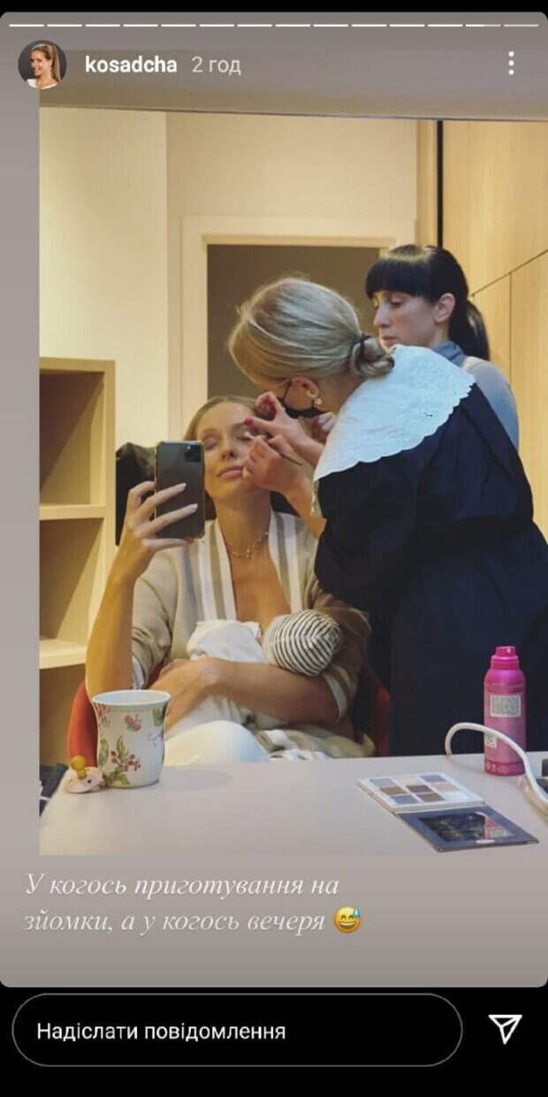 На новых кадрах она показала. Как кормит ребенка в то время, как ее гримируют для очередной съемки. «У кого-то подготовка к съемкам, а у кого-то ужин», - написала она. Также Катя показала окончательный образ, который оказался довольно строгим. Она была одета в черный пиджак и белую рубашку, которую застегнула на все пуговицы. При этом лице телеведущей закрывала защитная маска. «Бонд. Джеймс Бонд», - подписала фото Осадчая. Напомним, Осадчая блистает на модных вечеринках, пока Горбунов мечтает о дочери: "Все такие хорошенькие" А еще Politeka писала, что известная украинская певица ошарашила Осадчую признанием, детей не будет: "Им так трудно" Также Politeka сообщала, Осадчая показала маленького сына, которого скрывает от публики, Горбунов не выдержал: «Гордимся…»