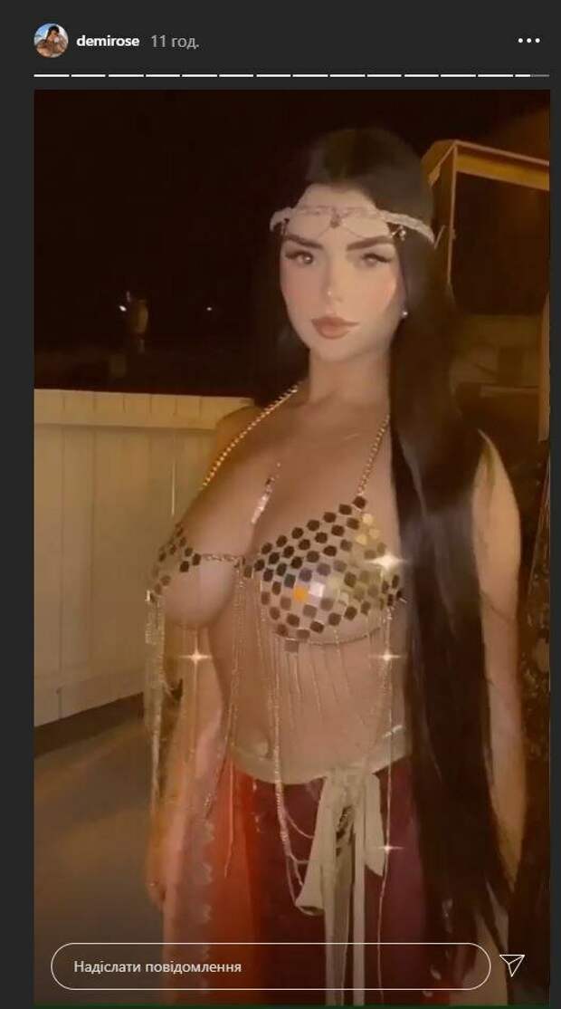 Известная модель Деми Роуз показала себя в максимально горячем виде на радость фанатов На фото Деми показалась в том, что можно назвать топом из блестящих элементов и цепочек. Звезда дополнила образ повязкой на голове, а волосы оставила распущенными. Роуз практически не прикрыла пышный бюст, который выпирал на фото, благодаря чему кадр стал максимально жарким.
