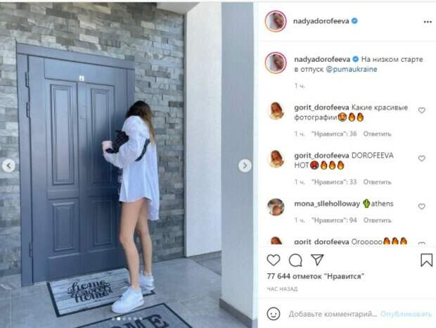 Поскольку артистка предпочитает вне сцены обычные и удобные спортивные луки, она появилась перед камерой именно в таком образе. Белая рубашка, накинутая поверх маленького топика с тонкими лямками, и джинсовые мини-шорты хорошо подчеркнули изящную фигуру звезды. С прической и макияжем певица заморачиваться не стала, выбирая комфорт: «На низком старте в отпуск» - написала Надя. Поклонники сразу поддержали пост: «Какие красивые фотографии