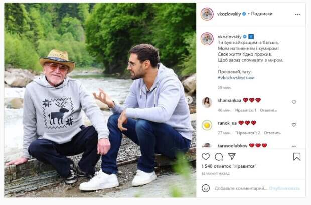 Украинский музыкант Виталий Козловский показал себя с самым важным человеком в жизни Как пишет Politeka.net, Виталий Козловский 15 августа рассказал, что у него умер отец. И вот сегодня, 22 августа, Виталий поделился новыми снимками, где вместе сидит с отцом. На фото Виталий был в с отцом где-то возле горной речки.
