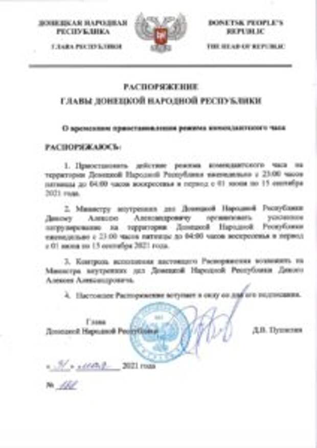 В «республике» отменили комендантский час. Но свободно передвигаться ночью можно будет только два дня в неделю. Распоряжение опубликовано на сайте «главы ДНР». Ограничения снимаются с 1 июня по 15 сентября. Действие комендантского часа прекращается с 23:00 пятницы до 04:00 воскресенья. Напомним, комендантский час ввели в «республике» 27 мая 2014 года.