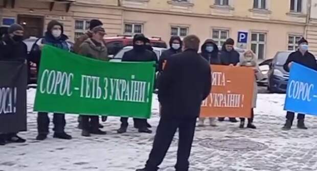 Сегодня во Львове прошла акция против иностранного управления в государстве. В частности, против влияния на Украину скандального финансиста Джорджа Сороса и его организаций. Участники пикета требовали выгнать их из Украины, сообщает Telegram-канал Klymenko Time. Неожиданная акция состоялась сегодня во Львове.