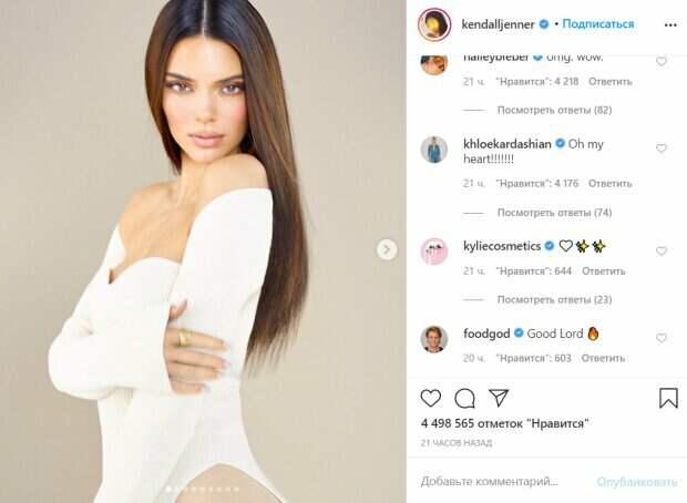 Несмотря на то, что кадры она никак не подписала, ее поклонники сделали это за нее. «Обжигающая красота», «ты идеал», «выглядишь просто очень круто», «ты бомбезная», «наслаждаюсь тобой», «очень сладкая», «такая милая на этих фотках», «как же я соскучился за твоими формами», - пишут они. Как сообщалось до этого, модель Кендалл Дженнер предстала перед пользователями сети в откровенных образах Она регулярно снимается в соблазнительных фотосессиях, демонстрируя свое обнаженное тело во всей красе. Кроме того, она является успешной бизнес-вумен, выпуская косметику собственного бренда. На этот раз звезда выпустила новую линию косметики собственного бренда. Девушка решила продемонстрировать новинки косметики на себе, правда для этого она выбрала весьма смелый вариант - Кендалл предстала в откровенных нарядах, которые привлекают к себе внимание больше, чем ее макияж на лице. Напомним, Кендалл Дженнер в прозрачной сеточке показала топ соблазнительных поз. Как Politeka писала, что младшая сестра Кардашьян утерла нос фигуристой родственнице. Также Politeka сообщала, что Кендалл Дженнер в неприлично маленьком бикини соблазнила формами на пляже.