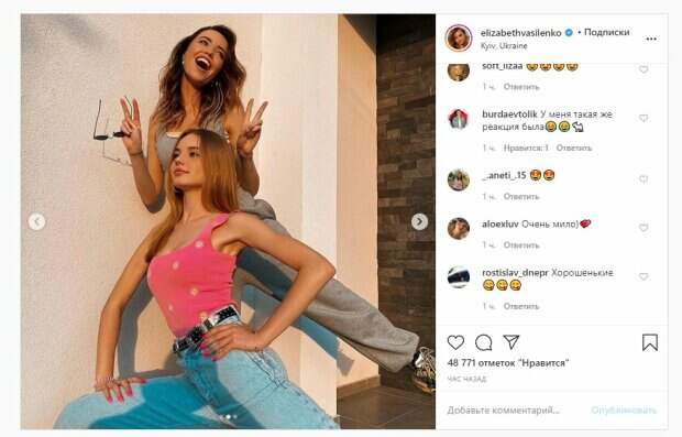 А вот в ролике, который добавила Василенко в пост, она изображает "козочку". После этого Дорофеева начинает громко смеяться. Об этом пишет Politeka.net со ссылкой на страничку знаменитости. Фанаты поставили почти 50 тысяч лайков и написали комментарии: "Две иконы", "Обожаю", "Козочки", "Солнечные такие", "Сладкие Богини", "У меня такая же реакция была", "Хорошенькие". Сообщалось, что популярная украинская актриса Елизавета Василенко похвасталась красотой крупным планом. Так, на фотографиях Василенко позирует, сидя на крыше дому с элегантной прической и пикантном наряде. Сообщалось, что Модель, блогер и актриса Елизавета Василенко, которая стала популярной после выхода сериала "Школа", показала нежное фото на закате солнца. Она держала в руках игрушку и улыбалась на камеру. Стоит отметить, что девушка была при полном параде: у нее были накручены волосы и сделан яркий макияж. Она нанесла себе оранжевые тени – один из трендов 2020 года. Напомним, юная звезда "Школы" избавилась от лифчика и выставила напоказ упругие формы Также Politeka писала, что Лиза Василенко из «Школы» скинула кофту, засветив упругую грудь в коротком топе А еще Politeka сообщала, что звезда «Школы» Лиза Василенко сверкнула красотой в экстремальном мини