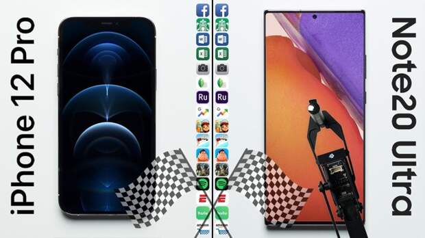 Apple недавно выпустила свой новый смартфон iPhone 12 Pro и, наверняка, многим было бы интересно узнать тест скорости iPhone 12 Pro против Samsung Galaxy Note 20 Ultra. На видео ниже с youtube-канала PhoneBuff новый iPhone 12 Pro сопоставляется с Galaxy Note 20 Ultra, что позволяет увидеть, какой из двух телефонов самый быстрый в работе.