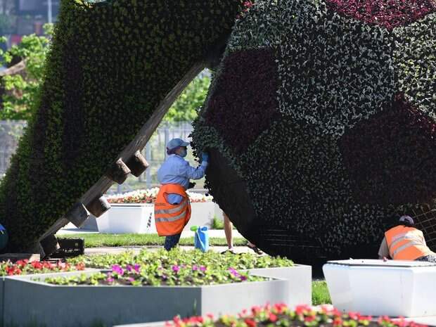 В столице Татарстана начали оформлять объемные цветочные скульптуры — этим занимаются специалисты «Горводзеленхоза». Всего в городе появятся 66 самых разнообразных фигур, среди них — бутсы, лебеди, баобаб, аисты, мяч и другие. Об этом сообщили в пресс-службе мэрии Казани. Изготовление каждой фигуры непростой процесс.
