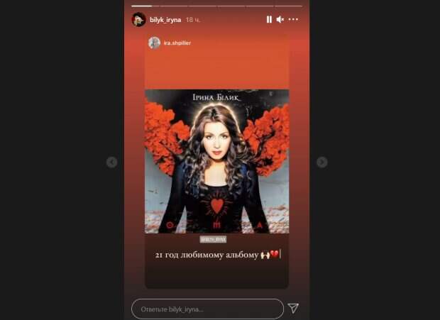 По случаю его дня рождения некоторые фанаты Билык запостили обложку альбома в Инстаграм, а певица перепостила их публикации у себя. На обложке диска изображена сама исполнительница. Она позирует в мрачном черном наряде с красными крыльями за спиной и своеобразным «нимбом» за головой. Стоит отметить, что певица на фото выглядит совсем непохожей на себя не только из-за возраста, но еще и за счет цвета волос – тогда Билык еще была жгучей брюнеткой. «21 год любимому альбому», - написала поклонница певицы в подписи к своей публикации. Судя по тому, что звезда перепостила эти записи на своей странице, ей такое внимание фанатов очень приятно. Ранее мы писали, что Билык показала себя в новом запоминающемся образе. На этот раз Билык надела тонкую кофту с принтом из черепов, рукава которой выставились из-под плаща. Последний отсвечивал из-за вспышки. Также под верхней одеждой можно заметить ткань в пайетках. Напомним, 50-летняя Билык похвасталась домашним фото со своим "бесстрашным другом": "Размер не имеет значения". Как сообщала Politeka, 50-летняя Билык показала, как вымахал ее пятилетний сынишка: "Как думаете…". Также Politeka писала, что 50-летняя Билык во всем черном засветила "черепа" на руках, неожиданное фото: "Ирина, вы серьезно. ..".