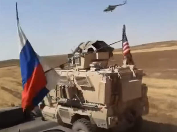В Сети появилось видео инцидента с участием российских и американских военных на северо-востоке Сирии, в результате которого пострадали несколько военнослужащих США. Видеозапись опубликовал YouTube-канал RusVesna. Фото: Кадр из видео Кадры сняты с крыши российской военной техники. В определенный момент военные РФ подрезают бронеавтомобиль американцев и блокируют его, крича при этом «Держать!