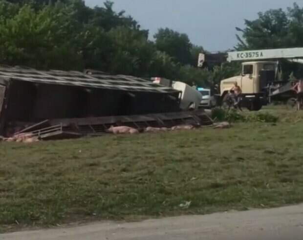 На Хмельниччине в результате ДТП пострадали животные Авария произошла вблизи населенного пункта Шепетовка - перевернулась фура, которая перевозила две сотни свиней. "Шла фура. Двигалась с небольшой скоростью. Но ее начало "ломить", "заваливать". Начался крик. Свиньи стали "вылетать" на обочину", - поделился очевидец ДТП в комментарии местным СМИ.