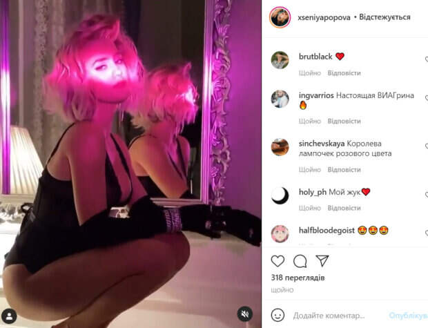 Образ дополняли туфли на каблуках, которые превратили Ксению в настоящую хищницу. Волосы эффектной блондинки были накручены, а яркий макияж оттенял ее невероятно миловидное лицо. На видео Попова соблазнительно двигалась, в результате чего ее пышный бюст чуть не выпрыгнул из глубокого декольте. «Все эти слухи о тебе и обо мне. Как мы можем сделать это реальностью?», - подписала видео звезда. Под постом Ксении оставили массу приятных слов. «Ну так то зачем? Я слишком влюбчивая», «Настоящая ВИАГрина», «Королева лампочек розового цвета», «Очень очень красивая», «Мой жук», - пишут пользователи сети. Как известно, Ксения Попова родом из Кривого Рога. Она прошла кастинги «Х-фактора» и даже прошла в прямые эфиры шоу. Судя по всему, там ее и заметил продюсер ВИА Гры Константин Меладзе, который пригласил девушку в обновленный коллектив. Напомним, что блондинка из новой «ВИА Гры» в платье с вырезами показала, как наслаждается жизнью: «Просто ангел». Также Politeka писала, что подопечная Меладзе из новой ВИА Гры вольготно разлеглась и поиграла с мужскими фантазиями: вот это страсть. А еще Politeka сообщала, что девушки из новой ВИА Гры в латексе порезвились на полу, заставив мужчин пускать слюнки: «Хищные красавицы».