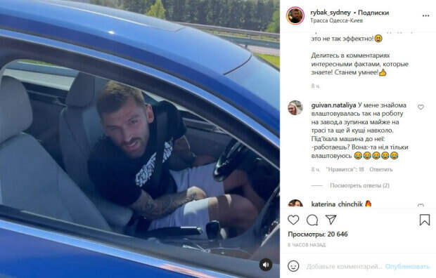 На видео Рыбак подъезжает на машине к Алине и задает ей весьма неоднозначный вопрос. «Сколько час?», - интересуется юморист. На это его возлюбленная тут же отвечает: «60 минут». «Спасибо!», - не остается в долгу комик, и уезжает. Судя по этим кадрам, Андрей и Алина действительно живут на одной волне, разделяя чувство юмора друг друга. «Обычный диалог на трассе! Знание - сила!», - подписал видео Рыбак. Его подписчики не смогли пройти мимо. «Вы как всегда супер», «Ахах, хорош», «Гениально», «Ахах разрыв», - пишут люди в комментариях к публикации. Напомним, экс-участник "Холостячки" Рыбак показал свою возлюбленную, ради которой со скандалом покинул проект. Как сообщала Politeka, экс-участники "Холостячки" Эллерт и Рыбак заинтриговали украинцев новыми кадрами. Также Politeka писала, что Рыбак после провала на "Холостячке" дал советы, что делать в случае неудачного свидания.
