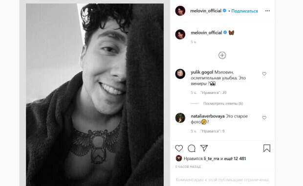 Однако, в этот раз он решил показать себя с другой стороны. Так, певец сфотографировался в простом домашнем образе. Он лежит перед камерой в черном халате на голое тело, демонстрируя свою большую татуировку. Артист решил показать крупным планом свое лицо - без макияжа, но со счастливой улыбкой. На этом снимке он выглядит очень непринужденно и по-домашнему. Поклонники оценили такое искреннее фото. «Так приятно что у тебя в жизни всё хорошо. И вернулся наш радостный Мэл. Хорошего дня тебе», «А брови-то растут», «Немного милашества», «Невероятный», «Какое солнышко», «Твоя улыбка успокаивает и согревает лучше, чем что-либо», «Мэл не пугай так у меня чуть сердце не остановилось», «Ангелочек. Такой светлый и милый», «больше всего люблю фотки на которых ты улыбаешься», «Улыбка которая сводит с ума», - пишут люди. Напомним, мрачный любимчик Данилко MЕLOVIN переборщил с макияжем ради эпатажного образа: "Какие ощущения без бровей?". Как сообщала Politeka, размалеванный любимчик Данилко MЕLOVIN на каблуках заставил говорить о себе: «Похож на Мэрилина Мэнсона». Также Politeka писала, что фаворит Данилко MELOVIN в новом образе сделал больно, не каждый выдержит.
