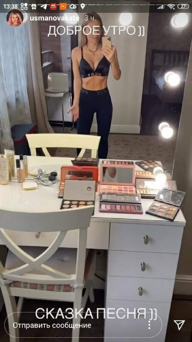 Известная фитнес-тренер Екатерина Усманова показала, как выглядит результат тренировок На кадрах Усманова показалась в коротеньких шортах и черном топе. Красотка хвасталась телом перед камером, стягивая немного шортики, чтобы показать идеальный животик. Волосы у тренера были распущенными, а снимала себя Екатерина на телефон перед зеркалом.
