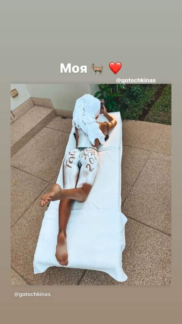 Подруга знаменитости, как сама рассказала девушка, «сгорела» буквально на следующий день. Из-за этого ее пришлось срочно мазать кремом от солнечных ожогов. «Начало 2020 года я встречала с друзьями в Тайланде и когда на второй день отпуска я жутко сгорела, мои @anastasia_domination @katenka_putienko решили на моём сгоревшем теле порисовать