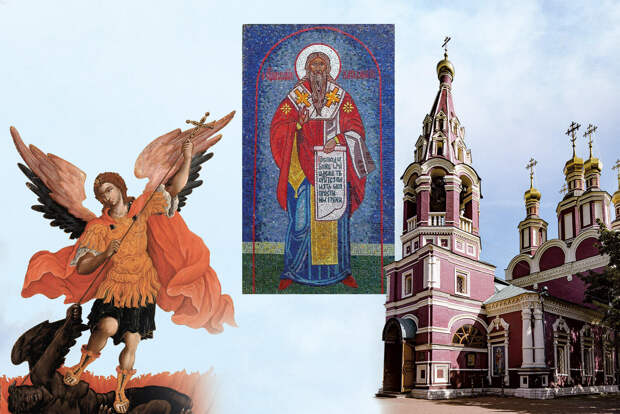 Сначала посреди села стояла деревянная церковь, основанная, по преданию, Иваном Михайловичем Тропарём, боярином, служившим у митрополита Алексия и в 1357 году сопровождавшем его в поездке в Золотую Орду. Эта церковь была несколько раз перестроена и в конце XVII века уничтожена пожаром, а на её месте возвели каменный храм, строительство которого завершилось в 1694 году. Тогда храм имел название Чуда Архистратига Михаила на Тропарёвском овраге — речка Очаковка протекала в глубокой лощинке через всё село, только в середине ХХ века её на этом участке убрали под землю. Нарядностью своего убранства храм обязан эпохе московского («нарышкинского») барокко; эта архитектурная манера сочетала классические приёмы русского зодчества с декоративными элементами западных стилей. С течением времени внешнее убранство храма стало несколько проще, строже, тем не менее он сильно выделялся на фоне типичных сельских храмов своего времени. А храмовая колокольня своими изяществом и декоративностью тяготеет к более ранней архитектурной традиции середины XVII столетия. Два храмовых придела имеют довольно редкое посвящение: они освящены в честь Происхождения Честных Древ Креста Господня и священномученика Харалампия, епископа Магнисии, области в Малой Азии, замученного по приказу римских властей в начале III века. Ему молились о хорошем урожае и просили защиты от голода, эпидемий и внезапной смерти. В память о чуде Появление на Руси храмов и икон, посвящённых архангелу Михаилу, связано с несколькими чудесами. В IV веке во Фригии, области Малой Азии, был спасён православный храм близ города Иераполя — по поверью, архангел рассёк ударом жезла скалу и отвёл от храма потоки горных рек. Другое чудо произошло позже, во времена Золотой Орды, когда митрополит Алексий исцелил от слепоты царицу Тайдулу, мать хана Джанибека. По просьбе митрополита ему была отдана территория ханского посольского двора в Кремле, на которой он основал храм, посвящённый архангелу Михаилу. Впоследствии этот храм стал частью знаменитого Чудова монастыря. Как феникс из пепла В 1939 году храм был закрыт, большинство утвари утрачено, колокола сброшены со звонницы, лишь один из них был спасён прихожанами, а затем, при ликвидации деревни в начале 1980-х, передан в расположенный напротив храма Театр На Юго-Западе. Во время войны храм стоял в запустении и постепенно ветшал, одно время он использовался как овощехранилище, склад для декораций «Мосфильма», после в нём разместился Московский художественный комбинат. Село Тропарёво относилось к владениям Новодевичьего монастыря, средства на строительство были выделены из монастырской казны. Архангел Михаил, глава небесного воинства, почитался как защитник человечества. Реставраторы обратили внимание на храм в 1957 году, но приступить к работам смогли только семью годами позже, в 1964-м. В 1975 году храм попал в кино: рядом с ним проходили съёмки фильма Эльдара Рязанова «Ирония судьбы, или С лёгким паром!», снимался он, кстати, на том же «Мосфильме». Увы, не обошлось в этот период и без невосполнимых потерь: накануне Олимпиады был уничтожен церковный погост с мраморными надгробиями XIX столетия… В 1988 году храм Архангела Михаила был передан Русской православной церкви, он был открыт в 1989 году одним из первых в Москве после завершения периода гонений на церков