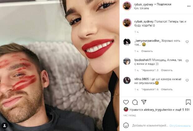net, Так, на своей странице в Инстаграм 29-летний юморист частенько радует фанатов контентом с участием своей возлюбленной, с которой они ранее путешествовали за границей, а сейчас вернулись домой в Украину. На новом фото показан зацелованный красной помадой Андрей и его пассия Алина, которая с ухмылкой показала результаты своей неистовой любви. Фолловеры уже успели отреагировать на увиденное, многие с юмором. «Попался! Теперь так и буду ходить!☺️», - шутливо подписал экс-участник «Холостячки». «В будущем это станет примером, как не следует смотреть на других девушек!», «Молодец, Алина, так с ними и надо )))», «Хорошо, хоть так», «Алина браво», - пишут в сети. До этого он показывал, как пассия его "воспитывает". Комик приготовился нарезать себе яблоко, но как только змахнул ножом, откуда-то раздался дикий вопль Алины. Андрей сразу же спохватился и подставил под яблоко досточку. Выглядело это очень забавно. Напомним, что полуфиналист "Холостячки" Рыбак показал безумства своей Алины в микротопике: "Вечерние концерты от любимой". Как сообщала Politeka, полуфиналист «Холостячки» Рыбак раскрыл пикантные подробности закулисья шоу. Также Politeka писала, что взрыв прогремел в машине полуфиналиста "Холостячки" Рыбака: "Еду и тут сзади…"