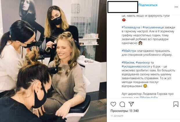 Украинская телеведущая Ольга Фреймут наводит красоту в непривычный для многих украинцев способ Как пишет Politeka.net, на странице одного из салонов красоты в Инстаграм появилось видео, на котором Ольгу Фреймут обслуживает сразу три специалиста. Пока звездная красотка сидит на кресле, одна девушка делает ей маникюр, вторая – накручивает волосы, а третья пытается в весьма затруднительных условиях накрасить телеведущую.