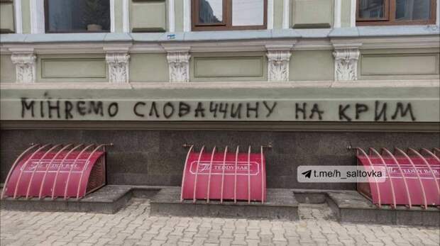 Вслед за МИД Украины, на шутку премьер-министра Словакии о Закарпатье в обмен на российскую вакцину от коронавируса отреагировали и харьковские «свидомые». Адресованное словакам граффити опубликовал местный Telegram-канал «h_saltovka», передаёт корреспондент «ПолитНавигатора».