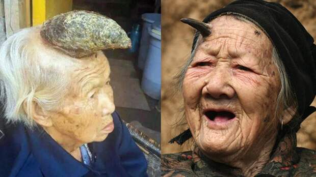В некоторых странах, в основном азиатских и в Перу, наличие рога считается божьей меткой и носители даже гордятся такой отметиной. К ним тянутся паломники и просят замолвить словечко перед богом. У 65-летнего сельского жителя по имени Лех Рам из штата Химачал-Прадеш (Индия) уже шесть лет как растет на затылке толстый рог. Он уже имеет больше 10 см в длину. Лех Рам Китайской женщине по имени Чжанг Руфанг теперь 101 год. Первый рог у нее стал расти в 100 лет и за год достиг 6 см. Сейчас проклюнулся второй – симметрично. Сначала они были похожи на крупные родинки, которые довольно быстро увеличились. Благодаря им Чжанг вытащила семьи своих детей из нищеты – она позволяла фотографировать себя только за деньги. Сейчас престарелая китаянка живет в монастыре и считается чуть ли не божеством. Чжанг Руфанг Самый длинный современный рог носит англичанка Меган Метьюс. Новобразование длиной 17 см закрутилось, но не доставляет женщине никаких неприятных ощущений. Она отказалась его удалять и зарабатывает на нем. Рог у Меган Метьюс Зафиксирован также нарост длиной 23 см – у француженки мадам Диманш, но она давно уже умерла. 93-летняя Жонг Нэн из Китая рогом обзавелась после того, как ей на голову что-то упало сверху. Женщина потеряла сознание, а когда очнулась, почувствовала странный зуд на макушке. С того времени там медленно растет рог, а сама женщина обрела дар провидения. Ну, так она говорит. Жонг Нэн из Китая Самый толстый рог у Ксио Линг из Китая – его диаметр у головы 11 см, а длина 16,5 см. 95-летняя женщина оказалась от предложения избавиться от нароста. Ксио Линг из Китая Занг Юнсай тоже из Китая, женщине за 90 лет. На фото она еще с рогом, но в 2016 году вынуждена была его удалить из-за сильного зуда. Занг Юнсай из Китая Китаец по имени Фуси еще не старый, ему около 60 лет. Рог у него растет 5 лет и он не хочет избавляться от него. Мужчину селяне считают божьим посланником и целителем, чем он неплохо зарабатывает на жизнь. Фуси Хуанг Юнфан из Китая, которому 84 года, рог растет 3 года, сначала это была просто шишка, полученная еще в детстве, а сейчас длина нароста почти 8 см. Хуанг Юнфан из Китая