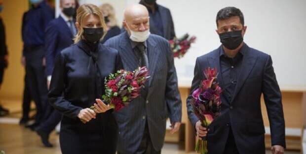 Церемонию прощания с Борисом Евгеньевичем Патоном посетили Президент Украины Владимир Зеленский и его жена Елена.[caption id="attachment_62651" align="aligncenter" width="620"] Владимир и Елена Зеленские[/caption]Они пришли в черной траурной одежде и в черных защитных масках и возложили цветы у гроба покойного.