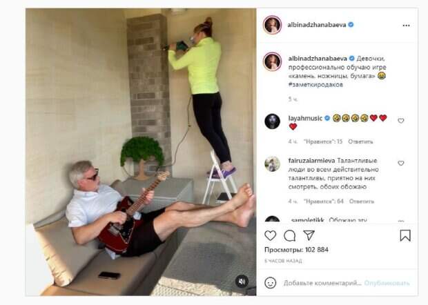 Сейчас красотка занимается воспитанием дочери, которую родила в 2021 году, а также ведет активно социальные сети. На кадрах Альбина показала, чем занялась с мужем после возвращения из Киева. Джанабаева играла с Валерием в "камень-ножницы-бумага". Кто проигрывал, тот что-то делал по дому. Альбине так пришлось "залезть" на стену и взять дрель, а Меладзе мыл посуду. Фанаты посмотрели ролик более 100 тысяч раз и написали комментарии: "Талантливые люди во всем действительно талантливы, приятно на них смотреть, обоих обожаю", "Молодцы. Так и надо. Договариваться. И не обижаться", "Крутые позитивные и классные. Вот так надо жить и с Вас брать пример", "Супер видео))) Градус настроения повышен на целый день". Напомним, экс-ВИА Гра Джанабаева после рождения ребенка привела себя в порядок, удивив моложавым видом А еще Politeka писала, что 42-летняя экс-ВИА Гра Джанабаева насмешила видео с Меладзе и новорожденной дочкой Также Politeka сообщала, что томная Джанабаева постаралась для Меладзе и устроила пикантную фотосессию в спальне