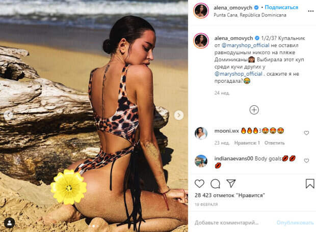 В этот раз звезда решила блеснуть фигурой в леопардовом монокини с необычным вырезом на груди - тонкая ткань едва смогла скрыть формы девушки. «1/2/3? Купальник от @maryshop_official не оставил равнодушным никого на пляже Доминиканы🙉 Выбирала этот куп среди кучи других , скажите я не прогадала?😂», - пишет Алена под фото. Вот что отвечают пользователи сети: «До груди ещё более менее, а тело вообще никакое , у вас есть муж или парень , если да походу он слепой», «🔥🔥🔥3😍😍😍», 2Body goals💋💋💋», «Perfect beautiful sweet wonderfull queen 👑», «I would like a taste. Please», «🔥🔥🔥🔥Огонь просто 👍», !Переход от талии к ногам ужасен 😅если честно , будто рёбра удалила . 3 фото не очень, а первые два 🔥🔥», «Такой же купальник на алиэкспресс видела сегодня за 300 грн🤷🏼♀️», «мало показала всего ж», «вот это прогиб)». Отметим, мы также писали, что прославившаяся благодаря необычной внешности модель снова поразила фанатов. Девушка примерила на удивление скромный наряд - коротенькое платье небесно-голубого оттенка с дерзким декольте сразу привлекло внимание фанатов. При этом обычно Алена делится фото, на которых блистает в кружевном прозрачном белье. Так, на странице в социальной сети Инстаграм Омович повились несколько фото, сделанных во время отдыха знаменитости. Позируя с коктейлем в руках, девушка выглядела очень ярко, а ее распущенные темные волосы удачно подчеркнули образ. «1/2/3/4? Новый цвет платья у @martskayashop это нечто 😍Мне идёт такая нежнятина? Меня редко можно встретить в платье, а не на спорте 😜», - написала девушка. Вот как отреагировали поклонники: «Очень красивое платье!!! Тебе идёт!!!шикарная фигура ~красотка 😻😻😻😻😻🔥🔥🔥🔥🔥», «No.3😍🔥», «3😍🔥», «😍 2 & 3», «😍Sexi», «Такие огромные персики😍😍😍😍», «You look good in every colour 🇮🇪🔥😁», «Арбуза захотелось ))», «Красивое платье. Мне нравится», «Такая ты красивая 😍😍». Напомним, украинская Кардашьян запихнула нереальные размеры под тонкую маечку. Как сообщала Politeka, украинская Кардашьян соблазнила пикантным видом в "золотом" бикини. Также Politeka писала, что украинская Кардашьян расстегнула косуху и показала свое пышное "добро".